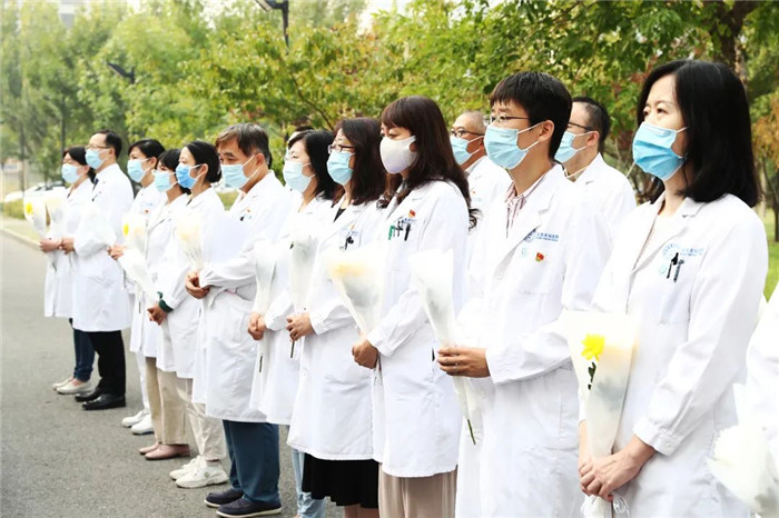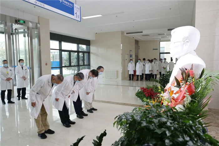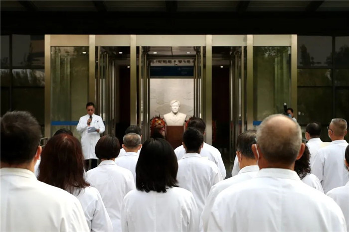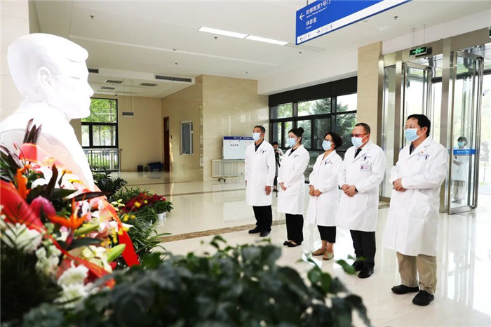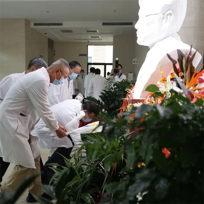 初秋的北京,凉爽宜人。9月30日一早,北京天坛医院、北京市神经外科研究所领导,神经外科学中心、神经病学中心、研究所、综合学科、职能科室等部门代表,在以王院士名字命名的“忠诚楼”前集合,向王忠诚院士塑像敬献鲜花。