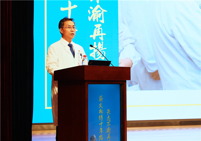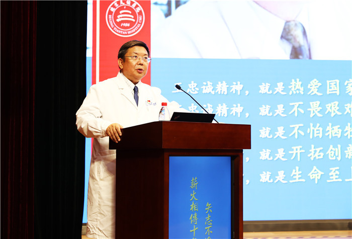 北京天坛医院党委书记管仲军作主题为“传承‘王忠诚精神’ 接续奋斗迎接转型发展新未来”的报告。