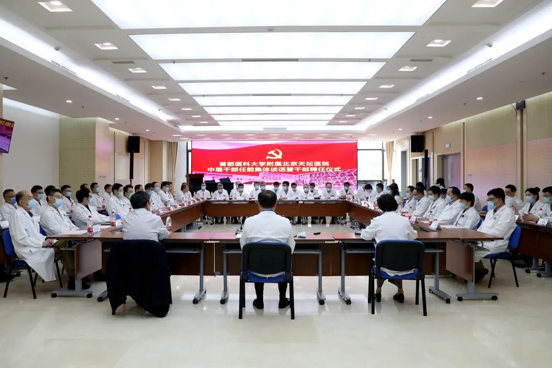 2022年9月29日上午,首都医科大学附属北京天坛医院举行神经外科学中心、神经病学中心干部任前集体谈话暨干部聘任仪式。党委书记管仲军,党委副书记、院长王拥军,党委副书记、纪委书记肖淑萍以及59名新任干部参加仪式。肖淑萍副书记代表院党委宣读了干部任命文件,王拥军院长为59名新任中层干部颁发聘书。