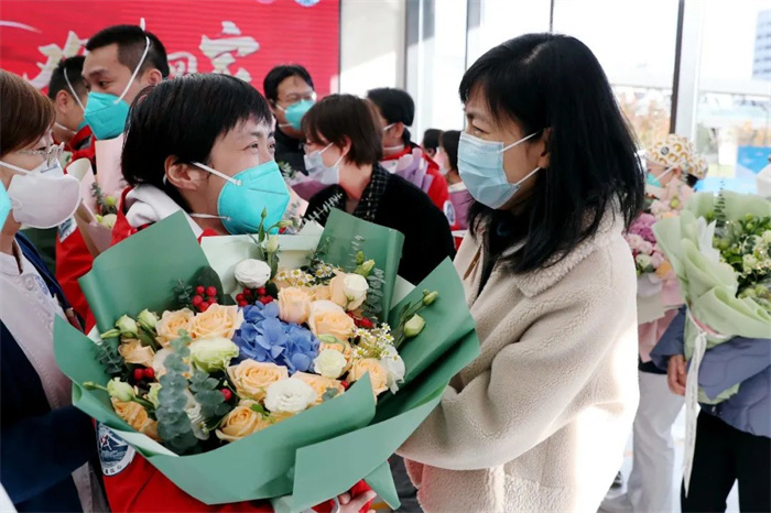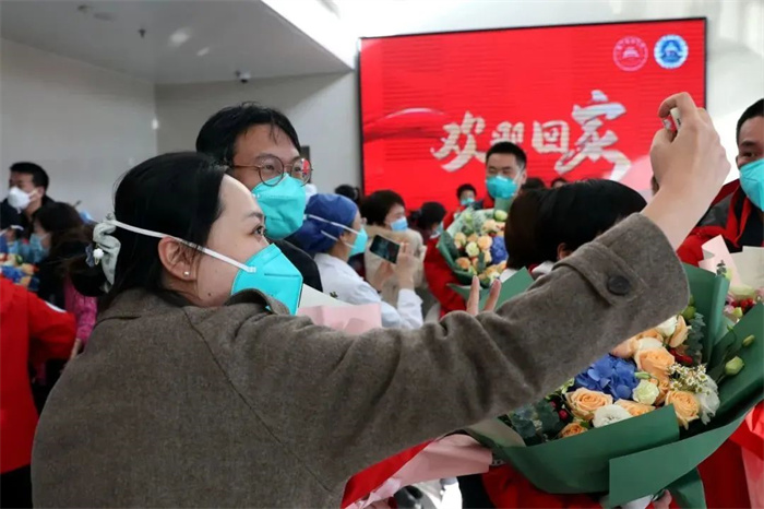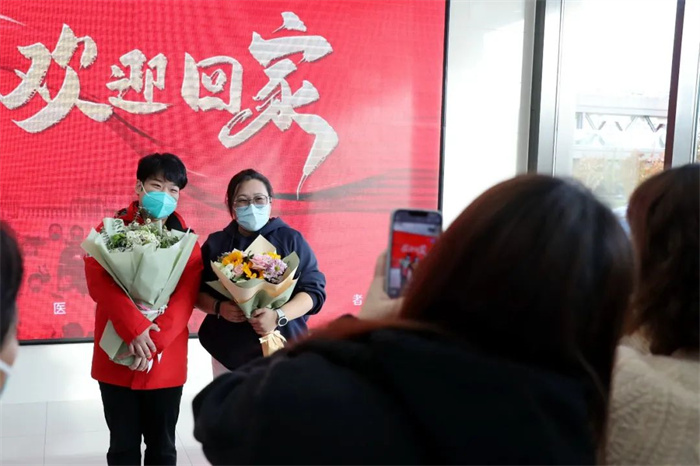 盛夏出发,归来时已是初冬。听说医疗队回来的消息,同事们买了鲜花、美食,早早等候在行政科研楼,北京天坛医院院长王拥军、党委副书记肖淑萍、副院长贾旺,和各部门负责人也加入迎接的队伍。队员们乘坐的大巴车刚刚停稳,等候的人群便迫不及待地围了上去,挥手、呼唤;车门打开,身穿红色队服的队员们一下车就被久候的人们包围,拥抱、还是拥抱。