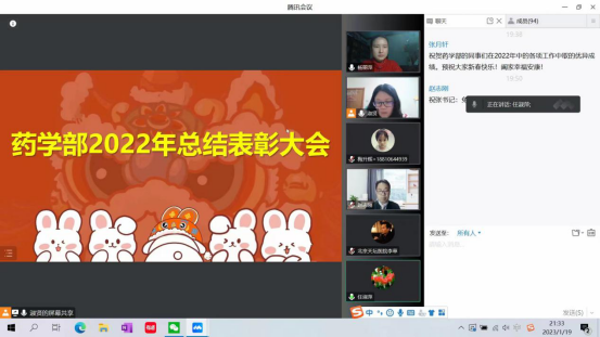 2023年1月19日,天坛医院药学部在线上举行2022年度总结表彰大会,参加总结表彰会的有药学部全体职工和部分退休药师,表彰会由新入职药师杨淑贤和杨丽萍主持。