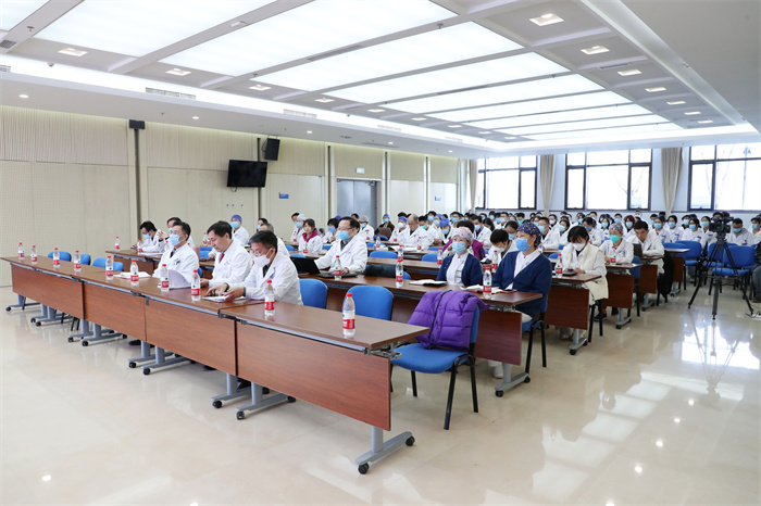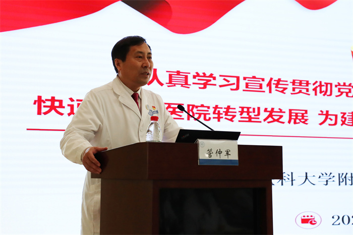 “一年春作首,万事行为先”,2月24日上午,北京天坛医院教育处党总支部举办深入学习贯彻党的二十大精神专题党课,邀请北京天坛医院党委书记管仲军作了题为《认真学习宣传贯彻党的二十大精神,坚持实事求是,快速推动医院转型发展,为建设国际一流的创新型医院团结奋斗》的主题报告,这堂党课也是本学期的德育第一课。分管教学工作副院长张力伟,教育处处长张家亮、副处长霍墨菲,各教研室主任、教学秘书、党员代表和长学制本科生,以及教育处全体老师100余人参加了本次党课,会议由霍墨菲主持。
