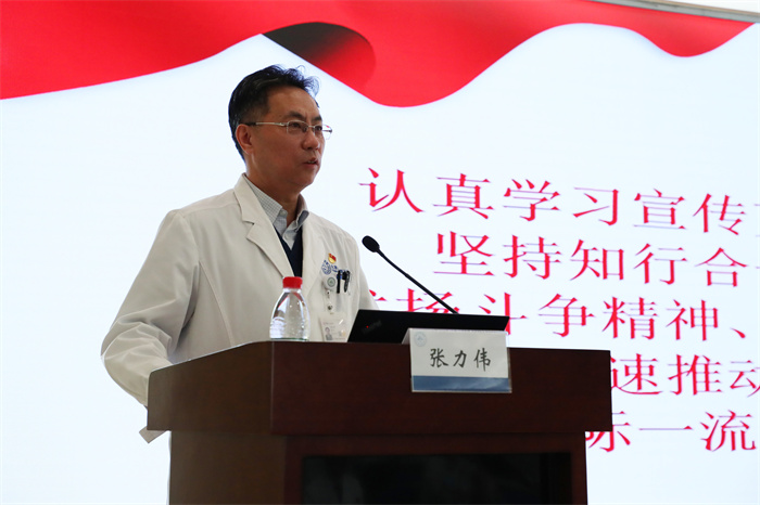 张力伟做总结发言。张院长指出,管书记立足本职工作,结合自己的思考,紧密结合二十大精神,围绕着大学发展、临床医学院发展、医院转型等方面,为老师和同学们带来了生动的党课。张院长希望同学们好好消化管书记的党课内容,脚踏实地,实事求是,做顶天立地的天坛人。
