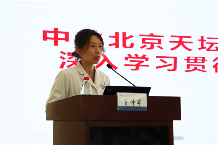 管书记强调,天坛医院作为临床医学院,作为大型公立医院,应履行“五大功能”担当“六大使命”,应该在党的正确领导下,坚持“患者至上、健康至上、人民至上”。每一位职工都应争做人民教师、人民科学家、人民医生。