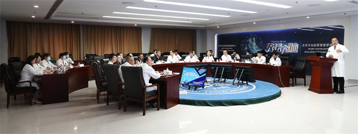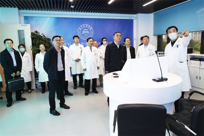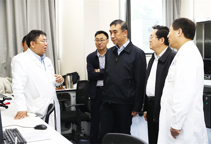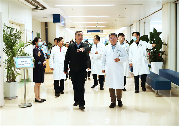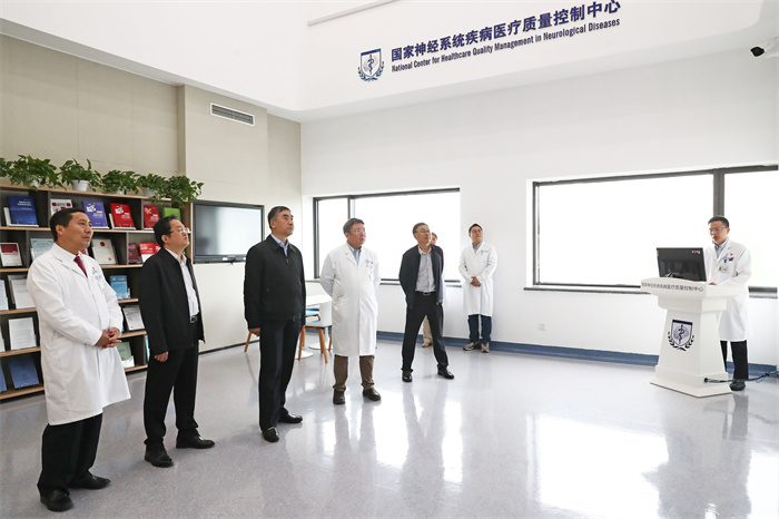 李斌一行实地走访了综合医学楼门诊、互联网医疗中心、天坛神经影像研究中心、国家神经系统疾病临床医学研究中心、国家神经系统疾病医疗质量控制中心、医院智慧管理中心等,详细调研了医疗工作、科技创新与转化、精细化管理等取得的成果。