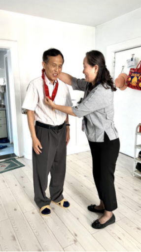 因为身体原因,今年荣获“光荣在党50年”纪念章的原神经外科党支部书记刘正水不能亲自来医院参加颁奖仪式。医院纪委书记任静带领离退办工作人员,亲自来到刘老师的家里。