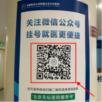 1.微信“扫一扫”图片中二维码,进入“北京天坛医院服务号”。