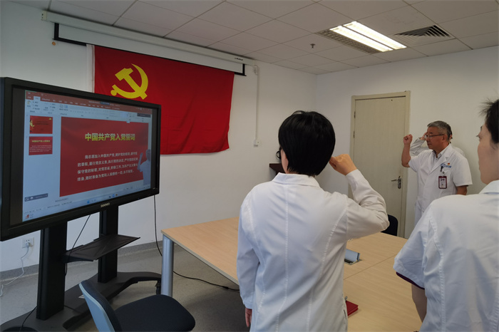 首先,全体党员在首都医科大学附属北京天坛医院党委常委、北京市神经外科研究所所长江涛的带领下重温入党誓词。之后,江涛同志以《深学细“研”锻党性 知行合“医”开新篇——学习宣传贯彻党的二十大精神》为题做主题党课,为与会同志深入解读了党的二十大的历史地位与重大意义,指出要学习领会党的二十大精神,必须要坚持全面准确,深入理解内涵,精准把握外延。同时,他提出要把二十大精神贯彻落到实处,应当从本职工作出发,坚持自信自立,守正创新,促进医学科技发展,助力高质量医院建设。