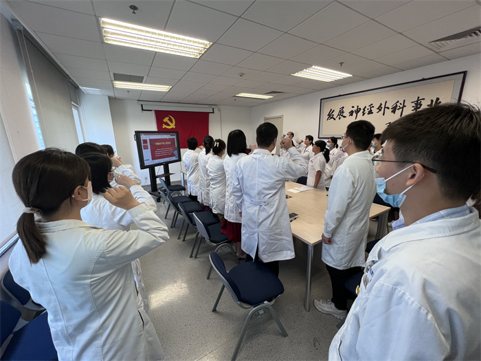 最后,与会同志纷纷表示,重温入党誓词激励了新老党员以自身的实际行动积极践行誓言,发挥党员先锋模范作用,增强党性意识,永葆政治本色。作为医学科学工作者,要围绕学习所得,聚焦主责主业,应当继续深入学习贯彻党的二十大精神,将二十大精神贯彻落实到今后的工作中去,以只争朝夕的精神做好各项工作,为推动医院高质量建设,在神经外科与神经科学领域为“健康中国”和“科学强国”做出自己的贡献,不辜负时代赋予我们的光荣使命!