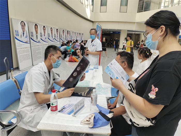 为进一步优化我院医保服务,改善患者就医感受,提升患者体验,切实增强人民群众看病就医获得感和满意度,配合做好北京市医保局开展医保领域打击欺诈骗保专项整治工作, 推动医保与医疗服务的深度融合。7月14日,由北京天坛医院神经外科学中心、神经病学中心、外科、内科、全科医学科、医疗美容科、临床营养科、医保办等组成联合义诊团队及医保咨询专台,在门诊一部大厅开展以“用好一支笔,守护救命钱”为主题的大型义诊活动。