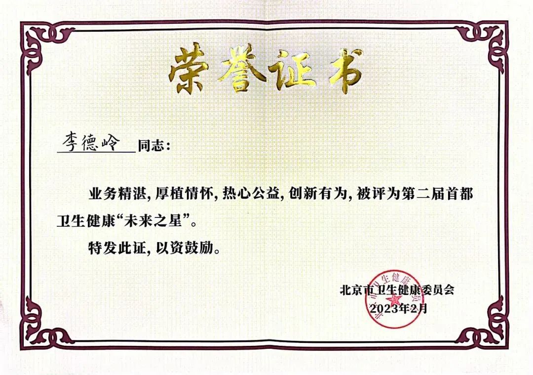 北京天坛医院李德岭荣获首都卫生健康 “未来之星”