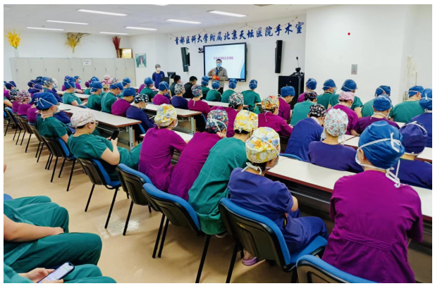 为了患者的健康,北京天坛医院的手术室内每天紧张有序的进行着200余台手术。为增强手术室医务人员的消防安全法制观念,提高防火意识,掌握必要的消防安全知识和技能,熟悉正确使用消防器材的方法,确保患者安全、自身安全、仪器设备安全,4月4日早交班,手术室与天坛医院消防部门联合开展了消防安全知识培训以及现场救火应急处置。演练参与人员包括中心手术室、国际部手术室、导管手术部、内镜中心护理人员,以及手术室保洁、配送人员,共计120人次左右。