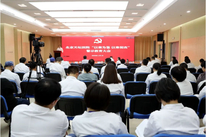 首都医科大学附属北京天坛医院1日下午组织专题会议,党委书记管仲军向全院党员干部职工讲授廉政党课。管仲军结合“以案为鉴、以案促改”警示教育,刀刃向内,对医院在行风建设、接诉即办等工作中近期查处的违规违纪案件进行点名通报,对目前医药卫生行业违纪违法案件、行风作风建设以及医院、科室治理工作中的突出问题、不良现象等的原因进行深刻剖析,并结合重点工作提出医院进一步推进全面从严治党责任落实、健全全面从严治党体系的具体要求。