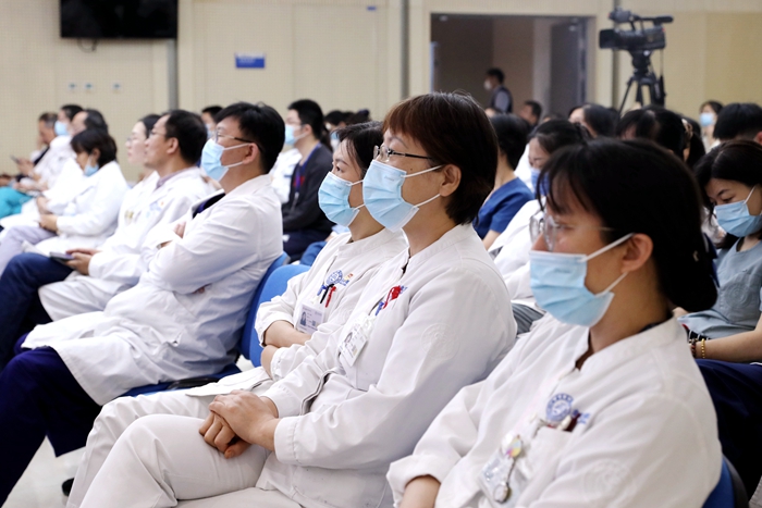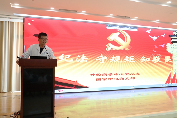 王拥军首先为党员讲述了自己学习习近平新时代中国特色社会主义思想的心得,结合中央有关科技创新、高质量发展等重要精神和医院实际,提出“北京天坛医院神经科能不能成为中国乃至世界神经病学创新的策源地”的思考。