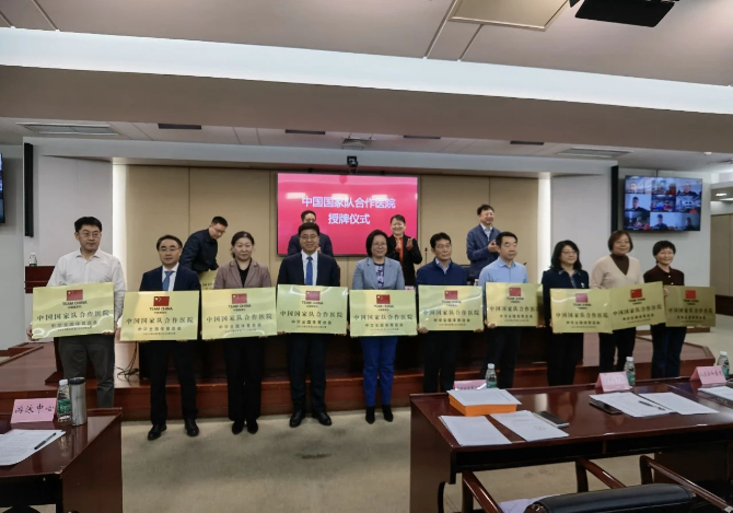 11月23 日,国家体育总局在京召开备战巴黎奥运会国家队医疗康复保障工作动员会,为中国国家队合作医院授牌。首都医科大学附属北京天坛医院成为中国国家队合作医院,医院常务副院长王伊龙出席会议并代表医院接牌。