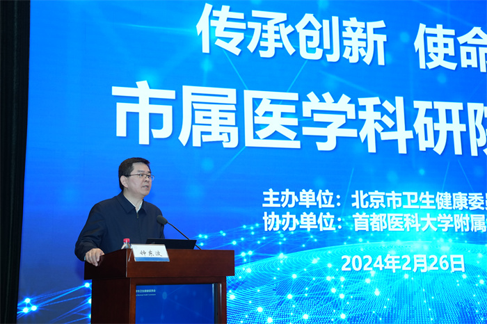 市属医学科研院所大会大会由北京市卫生健康委主办,大会由北京市卫生健康委副主任李昂主持,市卫生健康委党委书记钟东波出席会议并讲话。