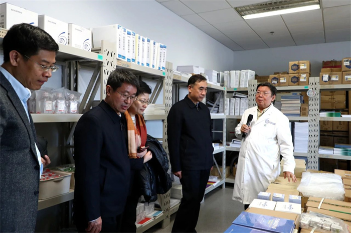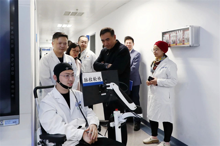 在国家神经系统疾病临床医学研究中心的展厅,多通道有机高分子柔性电极、神经外科手术机器人、生物活性颅骨骨瓣系统、意识障碍人机交互系统、高精度微创血管介入手术机器人等10多项科技创新成果吸引了调研团的注意,大家饶有兴致地观看设备演示、向工作人员询问感兴趣的问题。调研团还参观了国家神经系统疾病医疗质量控制中心,详细了解两个中心日常运行和开展科研等工作的情况。