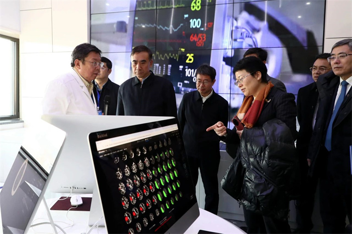 随后,调研团听取了北京天坛医院智慧管理中心“天坛大脑”的介绍,这个中心以智慧运营管理平台为主,辅助以楼宇自控管理、后勤运营数据看板等,能够智能化、数字化、实时化,真实客观地反应医院整体运行情况,辅助决策。