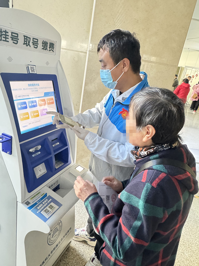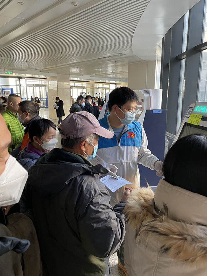 参加活动的15位同志首先一起重温了雷锋精神的重要意义,一起回顾在为患者精心治疗之余,化身志愿者或走进社区、基层传播健康知识,或在重大活动中提供医疗保障的经历。随后,党员和团员们分班次在门诊一部、二部、缴费窗口等人流量大的地点为患者提供贴心服务。他们发挥自身优势,用专业的知识和技能为患者提供准确的咨询和指导,耐心倾听患者的需求和问题,用简洁易懂的语言解释医院小程序和自助机使用方法,便于患者预约、缴费与治疗。针对不同患者的情况和需求,他们还提供了个性化的帮助,让就医患者感受到了充分的尊重、理解、关心。
