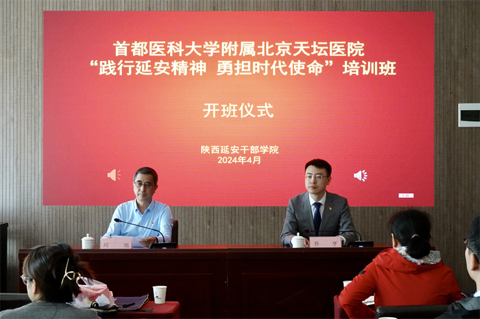 13日上午,学习班在陕西延安干部学院枣园分院举行简单的开班仪式。陕西延安干部学院办公室副主任、枣园分院副院长乔亨向培训班授旗,他在致辞中为全体学员讲述了延安厚重的人文历史、丰富的革命遗迹以及宝贵的精神财富,以及新时代为了造福人民“削山造城”,打造新区的壮举。国际部党支部书记刘旭在开班动员中,要求所有学员通过学习深切感悟延安精神、学习延安精神,把延安精神带回工作岗位,在推进医院高质量发展的实践中践行延安精神。