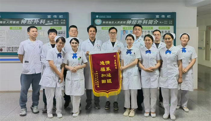 自上世纪90年代北京开展第一批医疗援疆工作以来,北京天坛医院神经外科就开始对口支援和田地区人民医院神经外科的工作。2023年5月10日,接力棒传到吴俊手上,他已经是科室派出的第16名援疆医生。入疆一年来,他始终牢记入疆初心,积极开展工作,亲自参与、上台的神经外科四级手术120余台,基本做到了神经外科常见病种的全覆盖。他克服艰苦的手术条件,积极开展新业务,填补了南疆地区的空白。他开展了和田地区首台复合手术颅内巨大富血供肿瘤的栓塞+切除术、和田地区首台颅内外沟通肿瘤术中供血动脉栓塞及双镜联合下手术切除,在和田地区人民医院首次成功诊断静脉窦血栓导致大面积梗死合并出血的病例,首次明确诊断狼疮脑病并开展规范化治疗。这些手术和新业务的开展,免去了和田老百姓往返乌鲁木齐的奔波和花费。