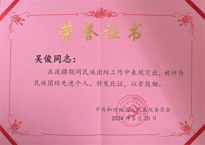 北京天坛医院援疆干部吴俊载誉归来