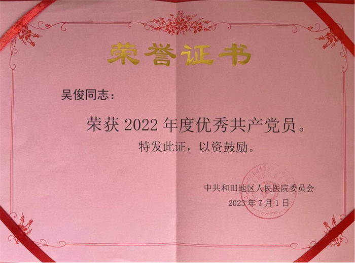 为了使先进的医疗技术在当地生根发芽,他积极参与科室管理,把提升手术量和手术质量作为主抓手,帮助和田地区人民医院神经外科工作取得了质和量的提升,现已能独立开展颅内动脉瘤介入栓塞术。这一年,他把“首善、实干、团结、奉献”的北京援疆精神落实到了工作和生活的点点滴滴;把“医德高尚、精益求精、严谨求实、勤俭廉洁”的天坛精神牢记在心;不忘使命,真正做到了把医疗技术留在和田。先后获得和田地区人民医院“民族团结先进个人”“优秀共产党员”、北京援疆和田指挥部颁发的“优秀援疆医生”等荣誉。