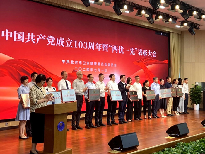 2024年7月1日,北京市卫生健康委召开庆祝中国共产党成立103周年暨“两优一先”表彰大会,首都医科大学附属北京天坛医院获得多项表彰。