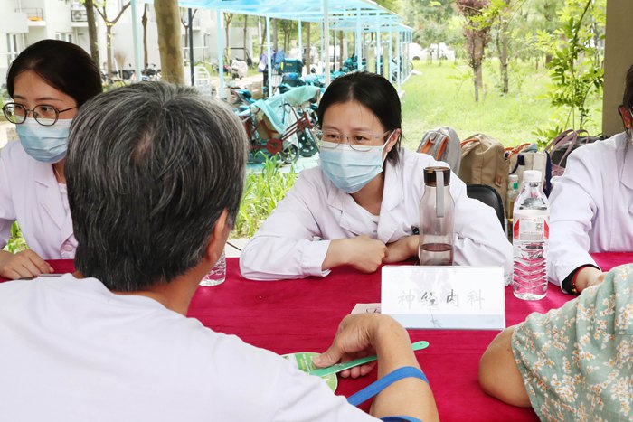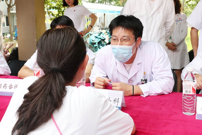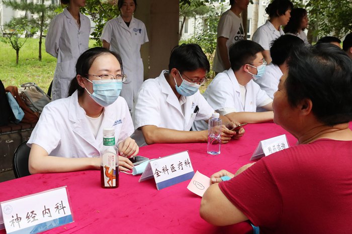 下午,在副院长李凯带领下,青年医师和医学生们来到青龙湖镇社区为属地和周边居民开展健康咨询。当青年医师们来到现场后,马上就被早已等候在此的村民们“包围”起来,这些来自神经外科、神经内科、全科医学科、外科、临床药学等专业的青年医护工作者们详细解答每一位居民的健康问题,细致讲解医学专业知识,得到属地居民的一致好评。“听说北京天坛医院的青年医师到基层,很多患者早早就来等候了”“希望天坛医院青年医师经常到基层走走看看,使优质医疗服务能够惠及更多百姓”。此次活动共为100余人开展健康咨询服务。