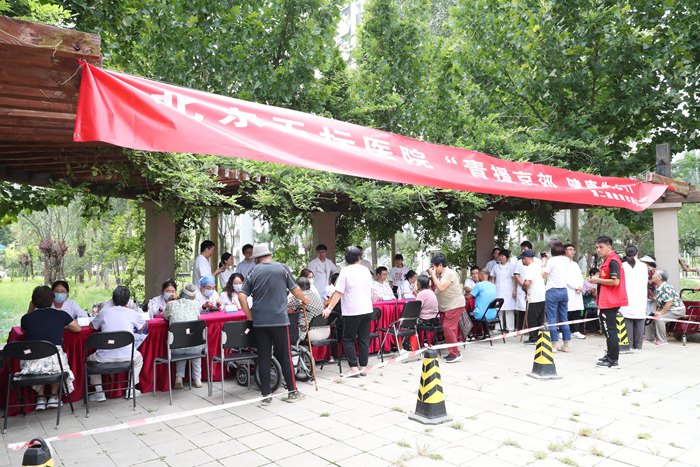 在第七个中国医师节与北京天坛医院建院68年之际,北京天坛医院副院长李凯,教育处处长张家亮,教育处党总支书记、副处长霍墨菲,团委书记董屹,伦理办公室主任白彩珍带领30余名党团员青年来到房山区青龙湖镇漫水河村开展第二期“青援京郊 健康先行”教育实践活动,为当地居民带来基于天坛标准的健康咨询服务。房山区青龙湖镇党委书记赵金龙、副书记沈长全、组织部部长夏建飞以及北京天坛医院派驻漫水河村第一驻村书记杨晓光等参加。