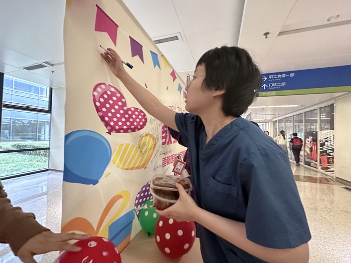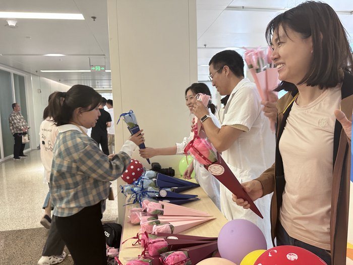 “老师您辛苦啦,送您一朵小红花。”10日当天,医院教育处组织各班班委,为授课老师送上花束表示感谢,同时,在医院的食堂门前,组织“书写教师节祝福,领取教师节花束”活动,写有“教师节快乐”的展板上,很快写满大家对教师的祝福。