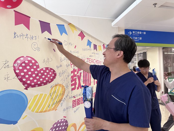 今年9月10日,是第40个教师节,作为首都医科大学第五临床医学院,北京天坛医院用简朴而庄重的形式,为全院教师送上节日的祝福。