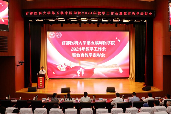 9月9日上午,2024年教学工作会暨教育教学表彰会在忠诚楼报告厅举行,全院教师汇聚一堂,总结过往,展望未来。大会由主管教育教学的副院长李凯主持,首都医科大学教务处处长张蕊杰代表学校出席,中国科学院院士赵继宗,北京天坛医院党委书记岳小林、院长王拥军、纪委书记任静、总会计师刘菊梅、工会主席徐燕玲、院长助理李子孝等在家的院领导悉数出席。