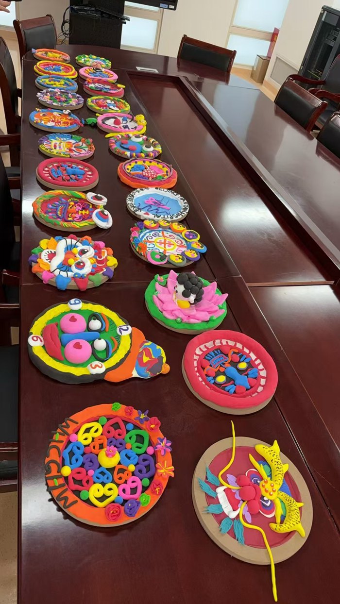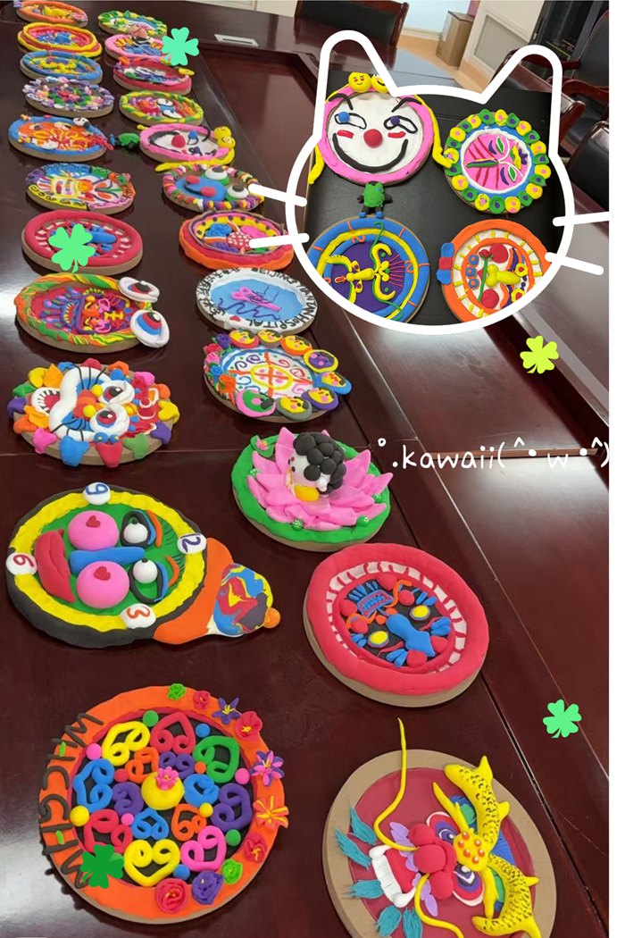 经过大家的不懈努力,一个个精美的瓦当作品渐渐呈现眼前。在制作过程中,我们遇到了诸多挑战,如彩泥干硬不易成型、图案雕刻不够细腻等。但团队成员们相互扶持,共同面对,最终成功跨越难关,完成了瓦当的制作。