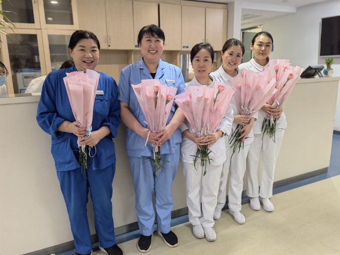 今年的国际妇女节恰逢周六,在2025年3月7日妇女节的前一天,北京天坛医院神经病学中心血管神经病学科二病区党支部的医护人员们早早地就开始了精心的筹备,特意选购了新鲜、娇艳的康乃馨,以此向女职工和女患者表达最真挚的祝福与关怀。每一朵精心挑选的康乃馨,都承载着对大家的深情厚意。在神经病学中心护士长邓永梅、血管神经病学科二病区护士长武美茹、主治医师杨晓萌带领下所有医护人员们把鲜花送到患者手上。当这些美丽的花朵被送到女患者手中时,病房里瞬间充满了春天的气息和温暖。女患者们的脸上绽放出久违的笑容,眼中闪烁着感动的光芒。这份来自心底的关怀,让她们在这个特别的日子里,感受到了无比的温暖与希望。同时,我们也向辛勤工作的女职工们送上了这份美丽的礼物,感谢她们一直以来的付出与努力。