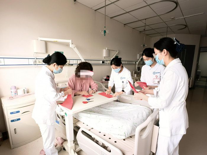 在剪纸的过程中,病房里不时传来欢声笑语。医护人员们不仅在一旁提供技术指导,还与女患者们亲切交流,分享生活中的点滴趣事。这种互动不仅拉近了彼此的距离,也让女患者们感受到了家人般的温暖。她们纷纷表示,这样的活动不仅让她们在节日里感受到了欢乐和温暖,更为她们的康复之路注入了新的动力和希望。