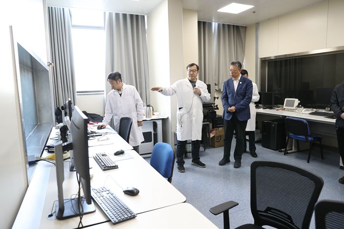 首都体育学院一行由党委书记杨海滨带队,分别参观了天坛神经影像研究中心、国家神经系统疾病医疗质量控制中心、神经系统疾病人工智能研究中心等研究机构,随后,双方进行深度交流。