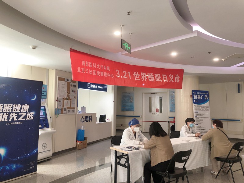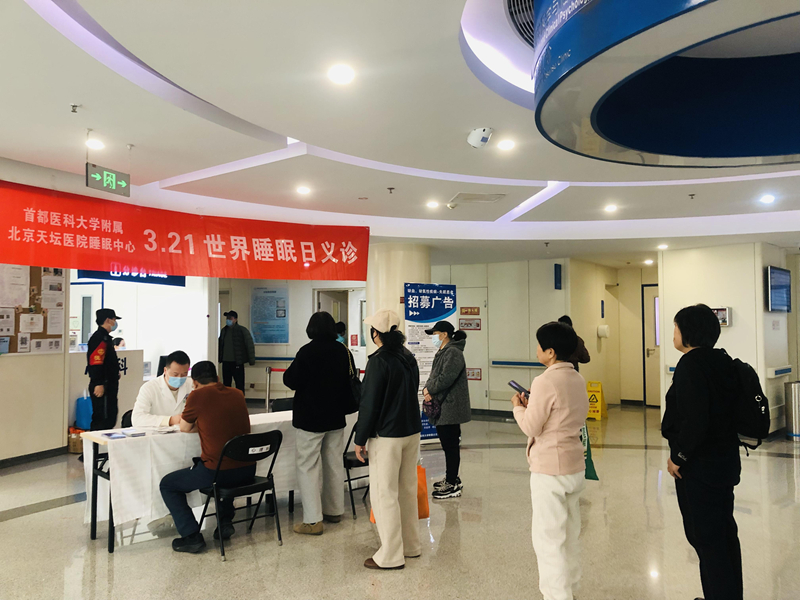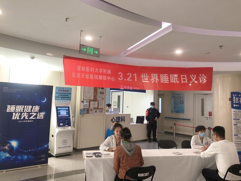 2025年3月21日,北京天坛医院神经精神医学与临床心理&睡眠中心特在我院门诊一部三楼心理科诊区举办世界睡眠日健康义诊活动。今年世界睡眠日的主题为“睡眠健康,优先之选”,呼吁全社会重视睡眠问题对身心健康的长远影响。 心理科各位医生和心理治疗师坐镇现场,提供免费的健康咨询服务。现场咨询人数众多,大家主要关心的问题包括失眠、睡眠呼吸暂停、不宁腿综合症等多种睡眠疾病,以及睡眠疾病伴随的焦虑、抑郁等情绪问题。患者反响热烈,对义诊活动非常满意。