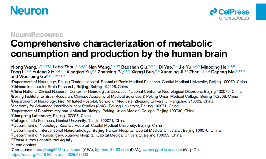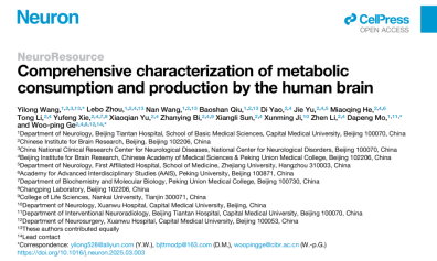 Neuron丨天坛-北脑团队合作发文揭秘人脑吸收和释放代谢物的综合特征
