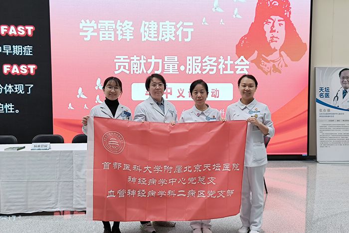 今年3月5日,是第六十二个学雷锋纪念日。连日来,来自首都医科大学附属北京天坛医院的党团员青年们踊跃行动,走近患者、深入基层,以“天坛标准”的医疗服务传递温暖,以“脑健康”为主题普及科学知识,弘扬奉献、友爱、互助、进步的志愿精神,以实际行动书写新时代的雷锋故事。
