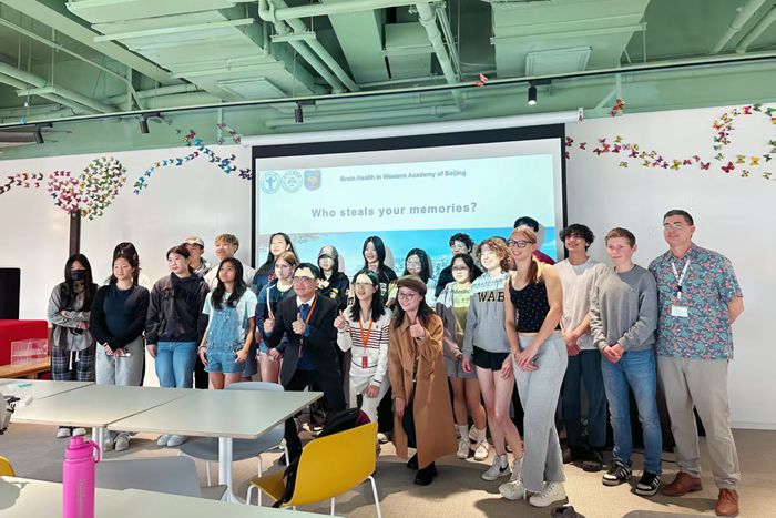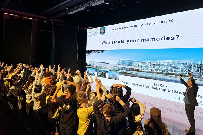 “脑健康”是关乎全民健康的“头等大事”。3月21日,医院团委“脑健康进校园”宣教团队走进北京京西学校,为这所学校450余名初高中外籍学生普及脑健康知识。志愿者们围绕如何科学用脑、如何保持记忆、睡眠的奥秘等三个主题,以全英文的形式用孩子们喜欢的方式与学生们进行交流,短短几小时的课堂上,一片欢声笑语。学校校长梅德巍博士(Dr. Marta Medved)表示:“感谢北京天坛医院的科普团队为学生们带来的精彩讲座,这对于激发学生对脑科学及其研究的兴趣至关重要,希望双方以此为契机深入合作,欢迎北京天坛医院青年医师再次走进学校”。