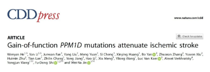 功能获得性PPM1D突变减轻缺血性脑损伤