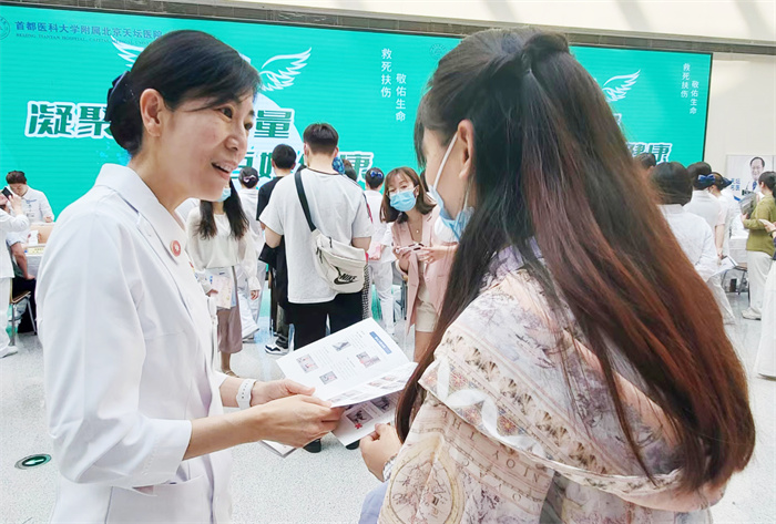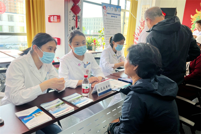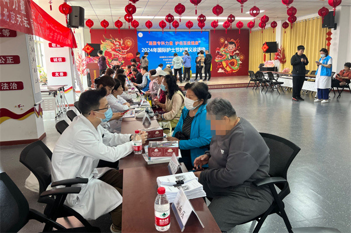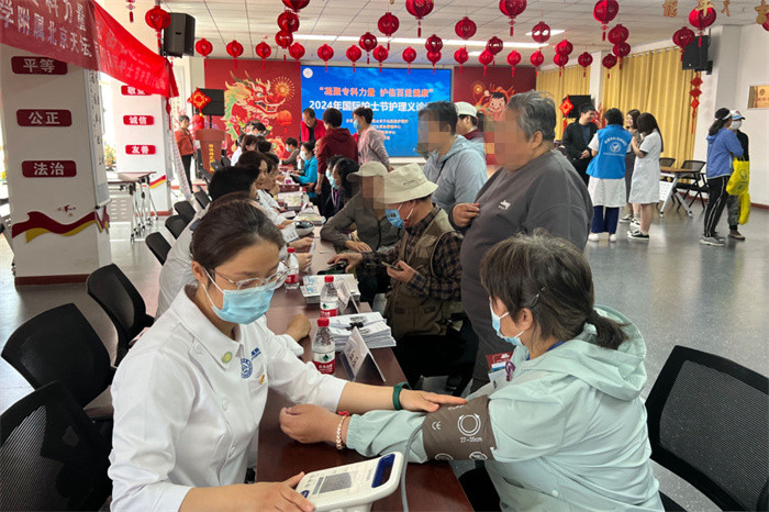 5月11日上午,医院护理部联合丰台区社区卫生服务管理中心、丰台社区卫生服务中心、丰台街道办事处,在丰台街道游泳场北路社区举办“凝聚专科力量 护佑百姓健康”护理义诊活动。在护理部主任蔡卫新、副主任李靖的带领下,来自医院老年专科、心血管专科、糖尿病专科、卒中专科、消化专科的医护专家现场为社区居民答疑解惑,进行健康评估、普及医学知识。