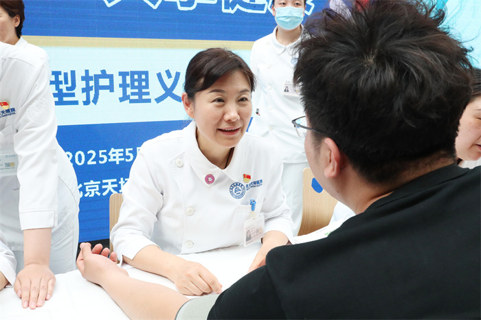 护士节当天,北京天坛医院以一场主题为“智护融心·专科领航·共擎健康”的大型护理义诊活动,为公众送上了一份特殊的节日礼物。此次活动由护理部副主任李靖带队,联合6个护理工作室及11个护理门诊的护理专家,在门诊一部大厅为市民提供了一场集科普、义诊、互动体验于一体的健康盛宴,以专科智慧温暖民心,吸引了众多患者及家属参与。