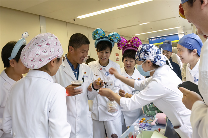 在这个特别的日子里,护理部主任蔡卫新、副主任梁建姝及副主任李靖化身“甜蜜使者”,带着满载祝福的节日蛋糕走进全院各个护理单元,将温暖与敬意送至每一位护士手中。