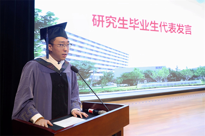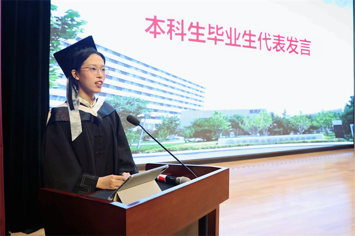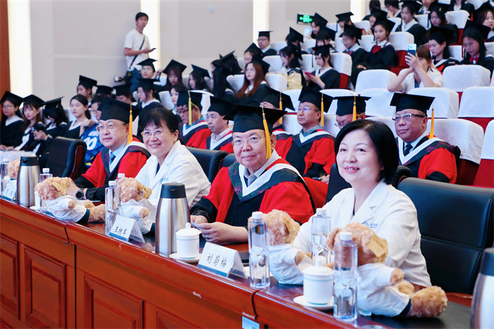 “白袍加身的誓言在耳畔不绝回响,5年的求知时光终将化作再次出发的行囊,未来无论身在何方,我们必将以首医精神为锚,以天坛院训为舵,在守护生命的航程中,永葆悬壶济世的初心,永怀大医精诚的豪情,在健康中国的长卷上续写‘天坛人’的壮丽篇章。”毕业生代表单舒乙、邓禹在发言中表达了对学校、对医院的感谢,号召同学们坚守正道,自强不息,不忘初心,以青春和奋斗守护生命,为社会健康贡献力量。
