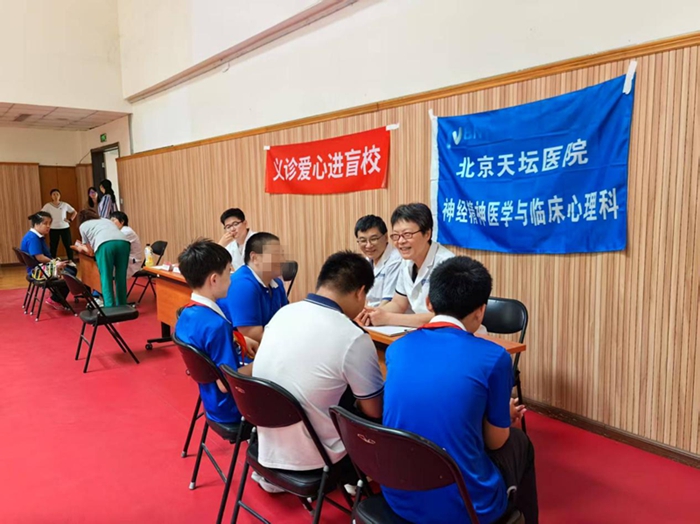 专家们不顾酷暑高温,在王春雪教授的带领下,一支由神经内科、儿科、精神心理睡眠科、护理等多学科专家有序组合的团队,在北京市盲人学校为患儿和他们的家长提供全方位、一站式的诊疗服务。这种多学科联合诊疗模式有效弥补了单一科室的专业局限性,尤其为合并多种问题共病的复杂病例提供了更精准的评估和干预方案。