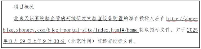 北京天坛医院脑血管病药械研发实验室设备购置招标公告