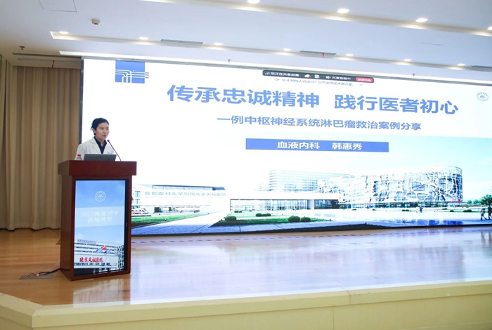 韩惠秀住院医师以“传承忠诚精神 践行医者初心一例中枢神经系统淋巴瘤救治案例分享”为主题,展现护理团队在沟通中的桥梁作用,强调细节关怀的治愈力量,突出了MDT团队在罕见病诊疗中的协同优势。