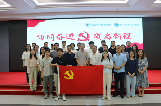 为扎实推进深入贯彻中央八项规定精神学习教育走深走实,强化党建引领科研协同发展,2025 年 8 月 28 日,北京市神经外科研究所(以下简称 “研究所”)党总支组织 20 余名党员同志,赴北京干细胞与再生医学创新研究院(以下简称 “干细胞创新院”),联合开展 “协同奋进 质启新程” 主题党日活动。